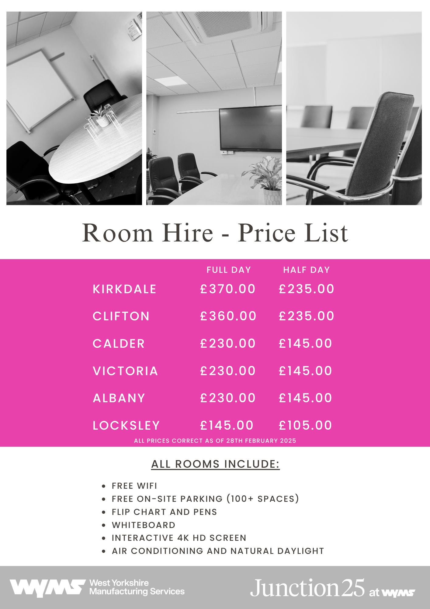 Enquire about the availability of your chosen room/s. Simply call us on 01484 711462, message us at info@jct25.co.uk or fill out the Enquiry Form below.